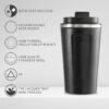 - Double Wall Insulation: Keeps beverages hot or cold for extended hours