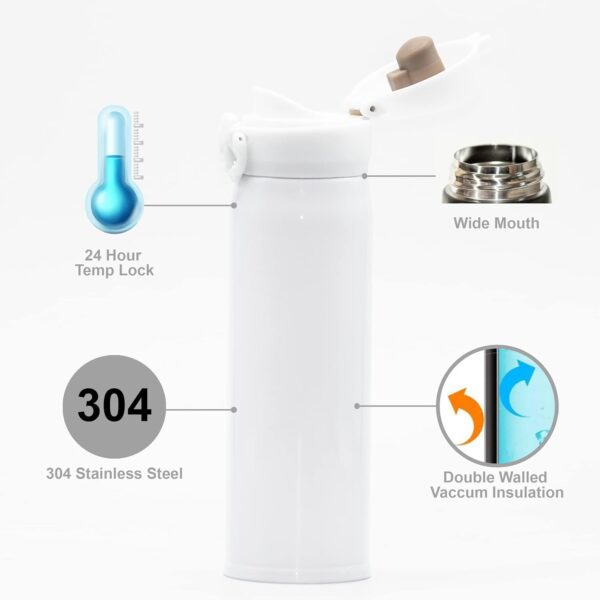 The press-button lid mechanism allows easy opening and smooth pouring, making it ideal for office, travel, gym, or daily commuting. Built with double-wall vacuum insulation, it maintains the temperature of your drinks for longer periods — keeping beverages hot or cold for hours.