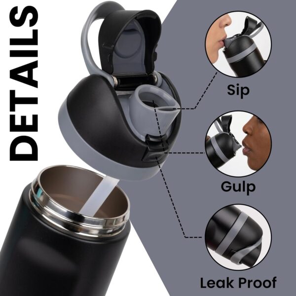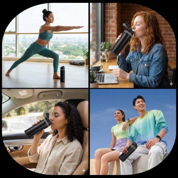 The built-in straw mechanism allows for easy, spill-free sipping, making it perfect for workouts, travel, office use, or outdoor activities. Its secure flip-top lid ensures leak resistance, while the ergonomic design provides a comfortable grip for on-the-go use.